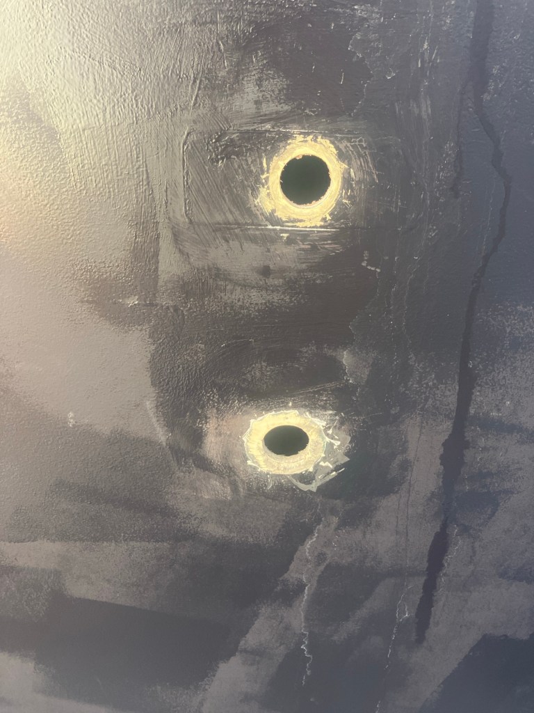Two holes… July 10, 2024July 10, 2024 by sailawaysarantium Fittings removed and holes cleaned out! Share this: Click to share on X (Opens in new window) X Click to share on Facebook (Opens in new window) Facebook Like Loading... Related