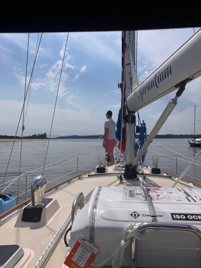 …. brought us to Cadboro Bay, averaging 7 kn today. Tomorrow might be a good day to head over to the US on a leftover Gale!