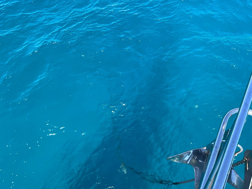 The water is very warm, turquoise and clear here and it finally feels like the tropics. I keep looking for Bull sharks as they say they thrive here. 😳 Manta Rays also exist abundantly here. This bay has a underwater canyon that runs from land out, which you have to be aware of when one anchors. If the boat drags, the anchor goes with, falls off the shelf and down the canyon!