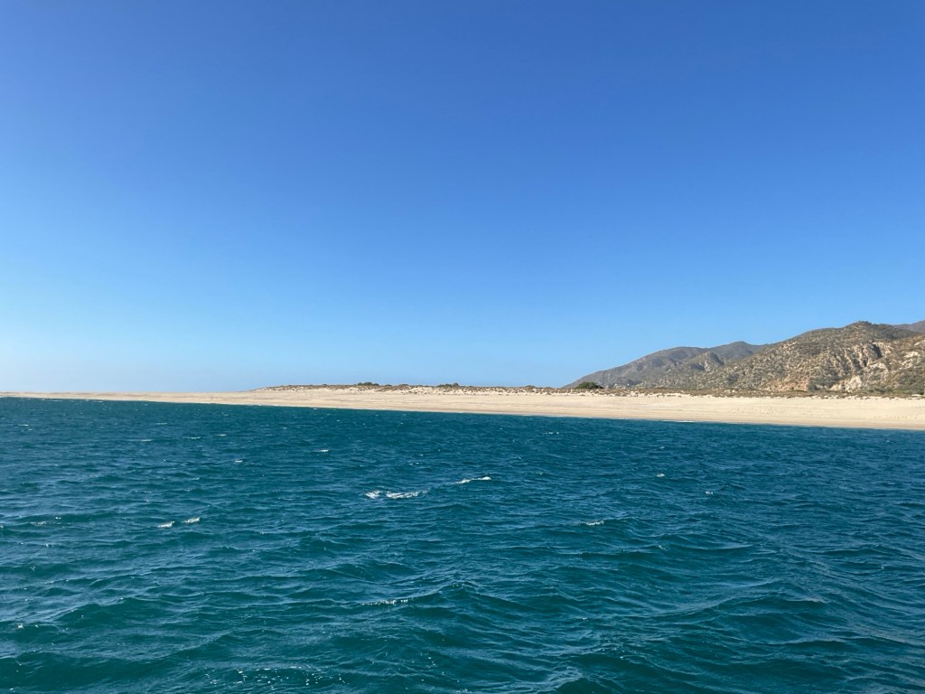 Wind kept building around the corner and by the time we had sailed past La Ventana, the combination of NorthWest wind and opposing current, it was time to find an anchorage… we found a gorgeous one 120 metres from the boat. Totally private and an amazing white sandy beach!