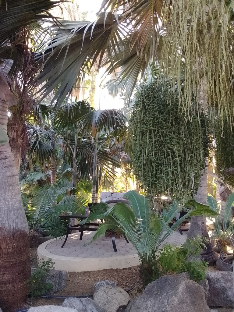 I woke up after had slept in a bed that didn’t move and headed to the coffee shop! Compared to la Paz, it’s very lush on this side of Baja.