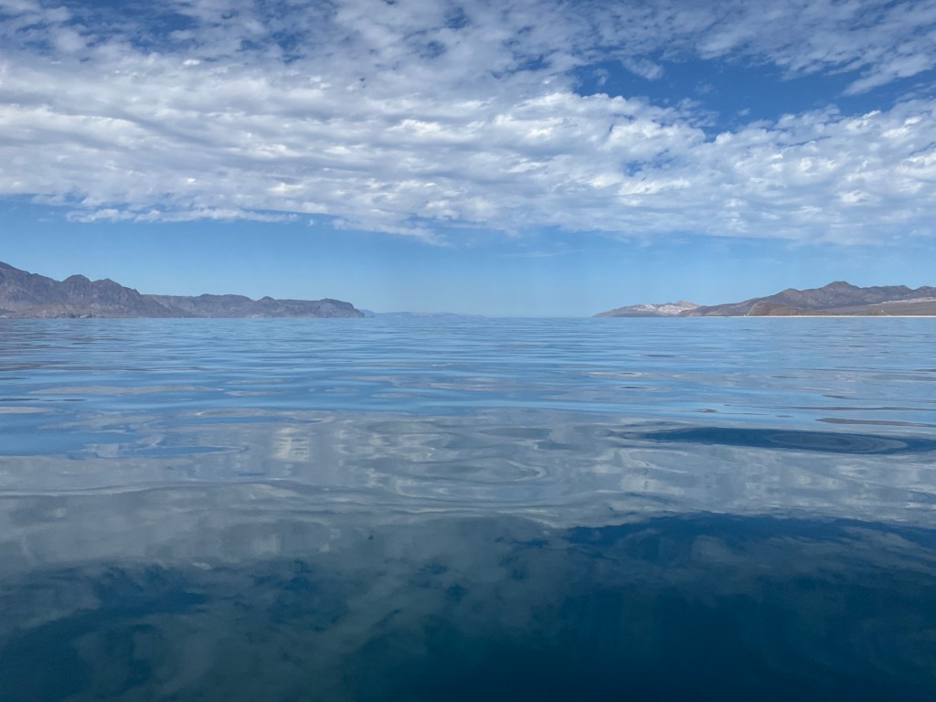 ….to pull anchor, even though there is no wind! I feel a bit of get-there-itis as I have booked a haul out on February 17th. After coffee and müsli, and another hike up one of the summits with friends, Sarantium motored out in between Isla San Fransisco and Isla San Jose’. I waved good-bye to SV Tara and watched the superyacht “La Datcha” disappear behind us. “La Datcha” arrived early this morning and we watched this yacht’s two helicopters emerge from down below its’ pads. The floor of the heli-pad opened up and two helicopters emerged slowly, just like in a James Bond movie …..anyhow….. you get the picture so no need to post one! Water was blank and not a stitch of wind was present! Batteries will be happy to have the alternator charging to the max! Life on the water is bueatiful!