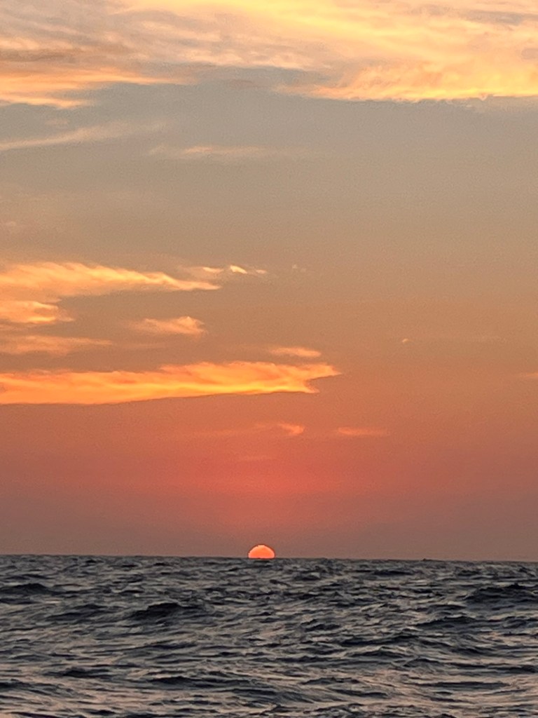 Waves are building tonight and it seems sea floor is shallow here. Typically, when the depth-sounder says 34-40 meters depth I can expect larger breaking waves. But there is no way around it. We have another island coming up on our port side and after that depths should increase. I’m so glad I bought a boat that can handle these conditions well.