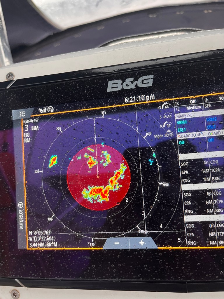 We saw it coming! Decreased the mainsail, furled in the Genoa, hoisted the staysail, and said ”bring it on”!!!