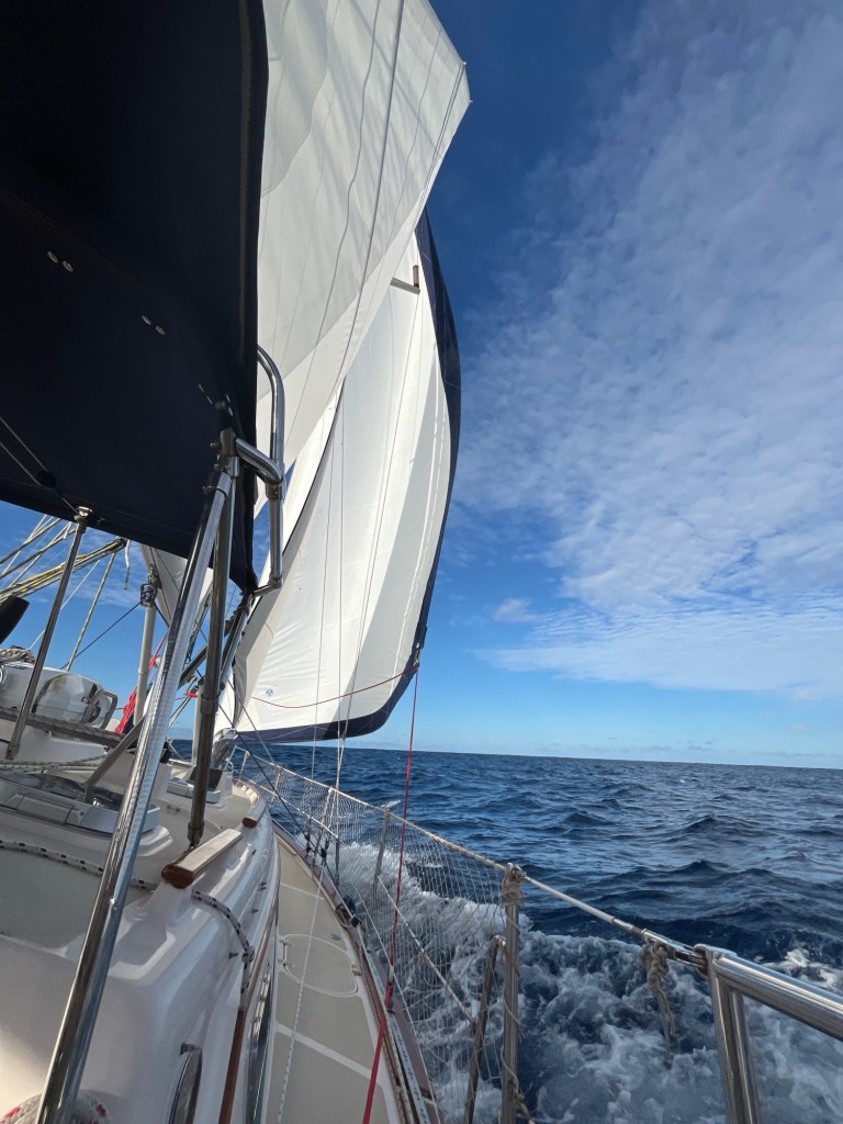I opened my eyes and immediately knew, as I felt the boat flying, that last night’s patients (and frustration) had paid off and we were in the south trade winds!!!