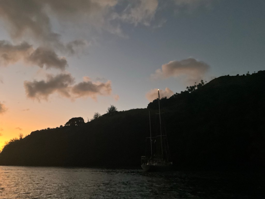 I am setting the alarm for early morning wake up as we are heading to the next island south of here. It is 40 Nmiles from here. I am hoping for a beam reach but I think we will be on a close reach as once past this island we are in the trade winds again. If it is too strong, we will turn around and head to the northern islands instead! No point pushing it, and all the islands are amazing here.