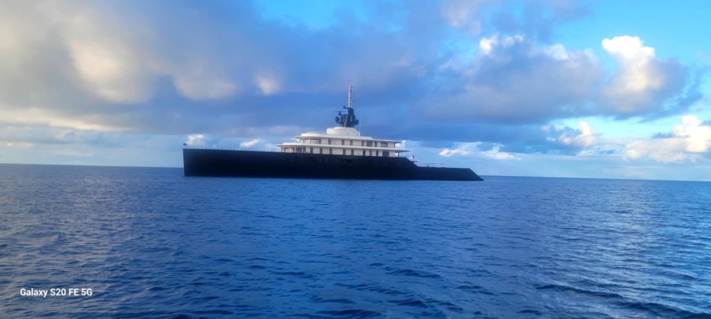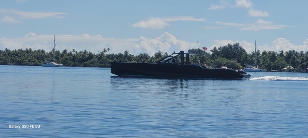 …. This time to the atoll, Toau! To my surprise, the wind is delivering more knots than predicted so we raised the sail right away in Rotoava and sailed past two Super Yachts. One of their tenders is longer than my boat!