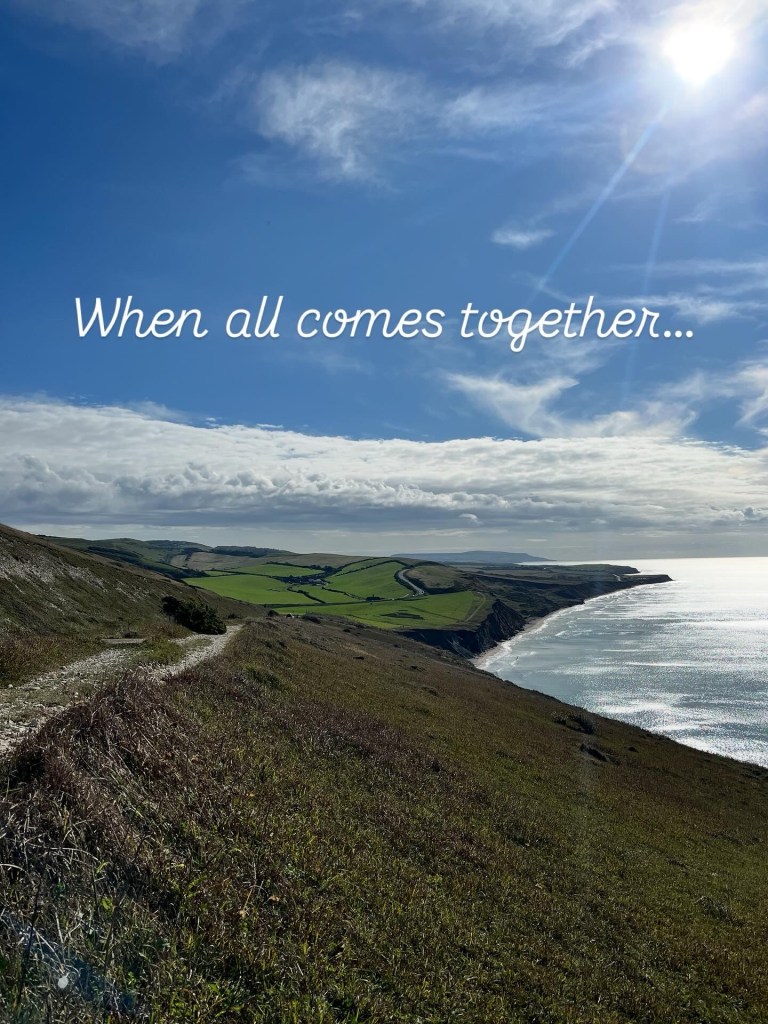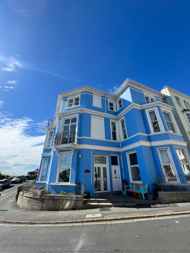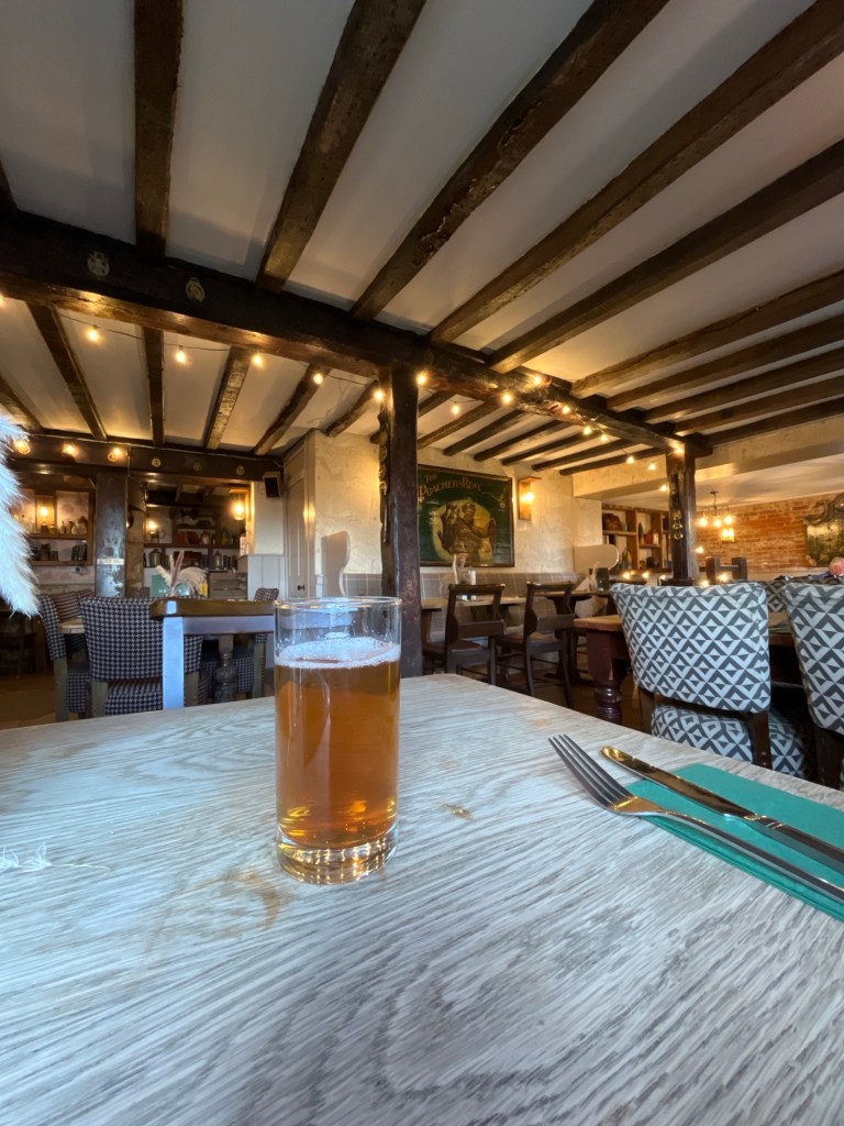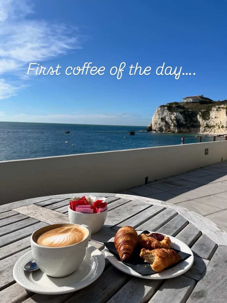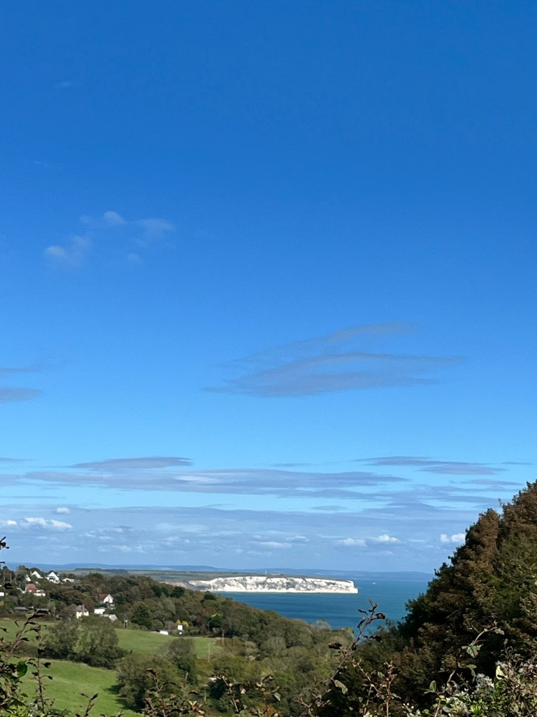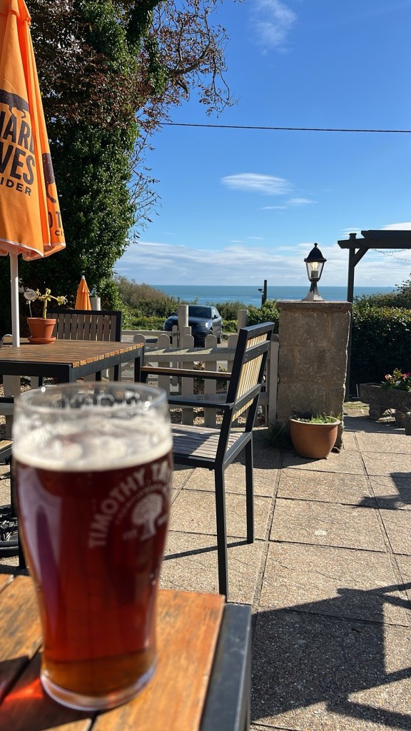 I checked in and did a stretch all the way to the pub! Beer, fisherman’s pie and France in the background!