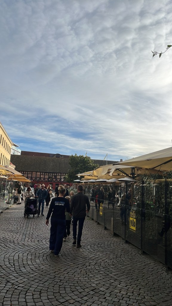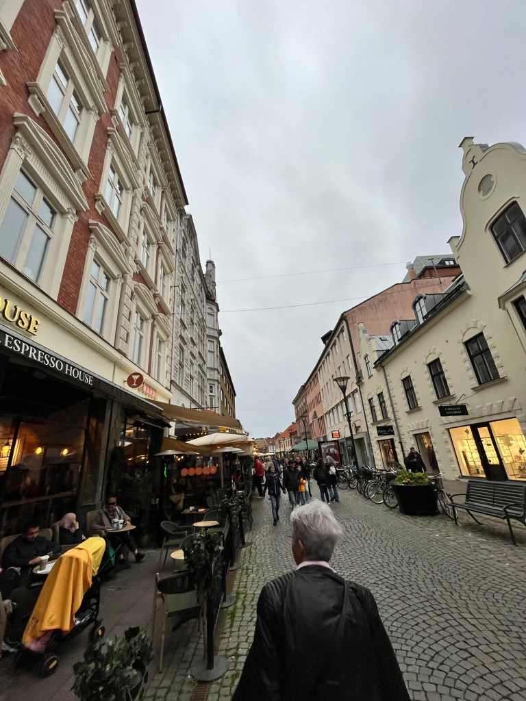 Malmő Gamla Stan, where people meet after work for a drink and tourists take it all in. Dad’s walk with dad’s pushing toddlers in strollers mid day and mid week, because they can! Dogs are accompanying their owners into many stores.