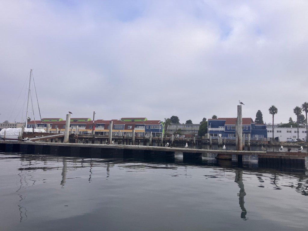 Every morning I get up, row into the city, walk to coffee shop, catch up on news and stroll through “Little Italy”, the best part of San Diego!